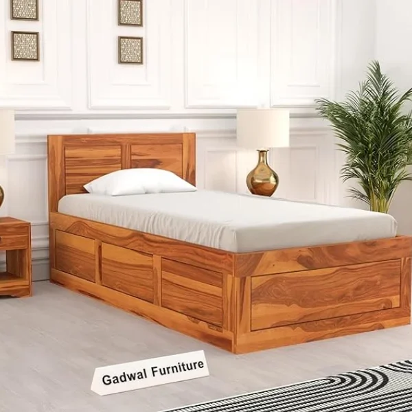 Kosmo Solace Single Bed In Sheesham Finish With Box Storage