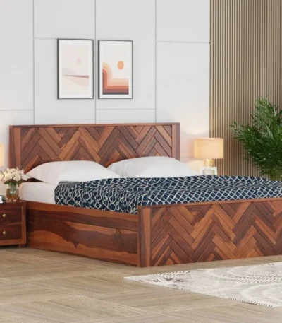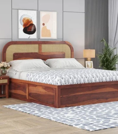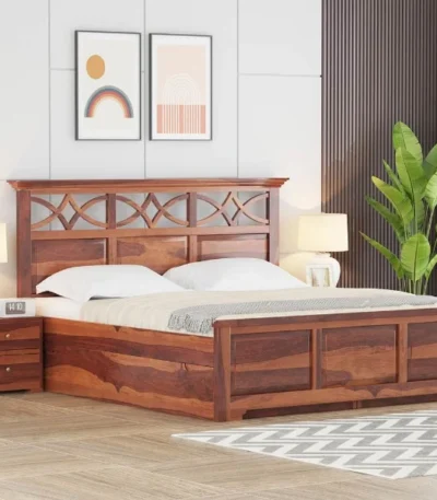 Lesy Sheesham Wood King-Queen Size Bed with Storage