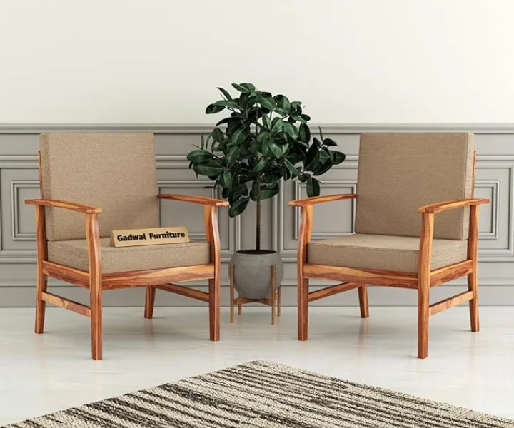 Solid Sheesham Wood Wooden Single Seater Sofa Chair Set of 2