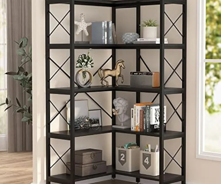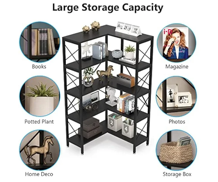 4 reviews for 7-Tier Large Corner Bookshelf with Metal Frame for Living Room