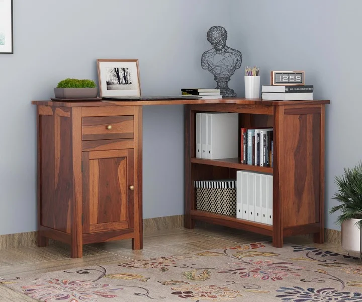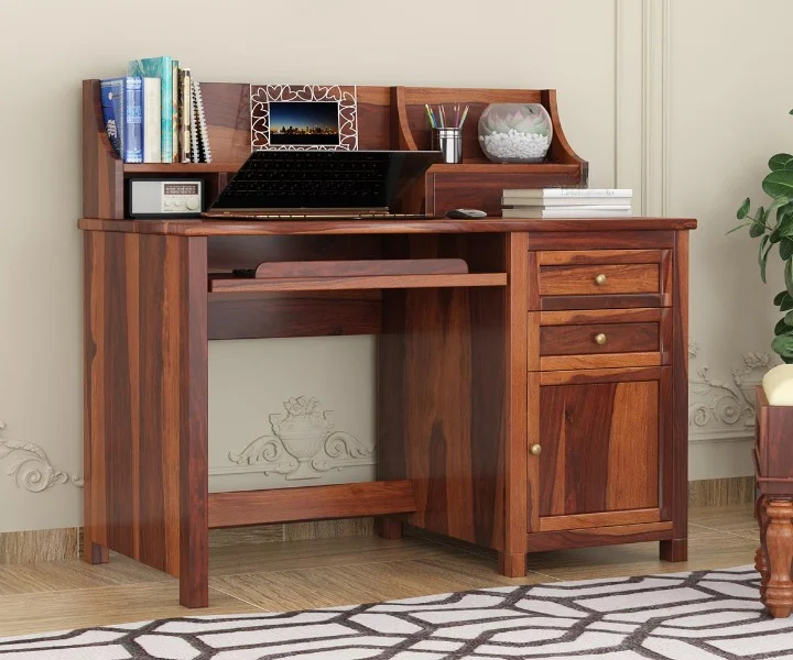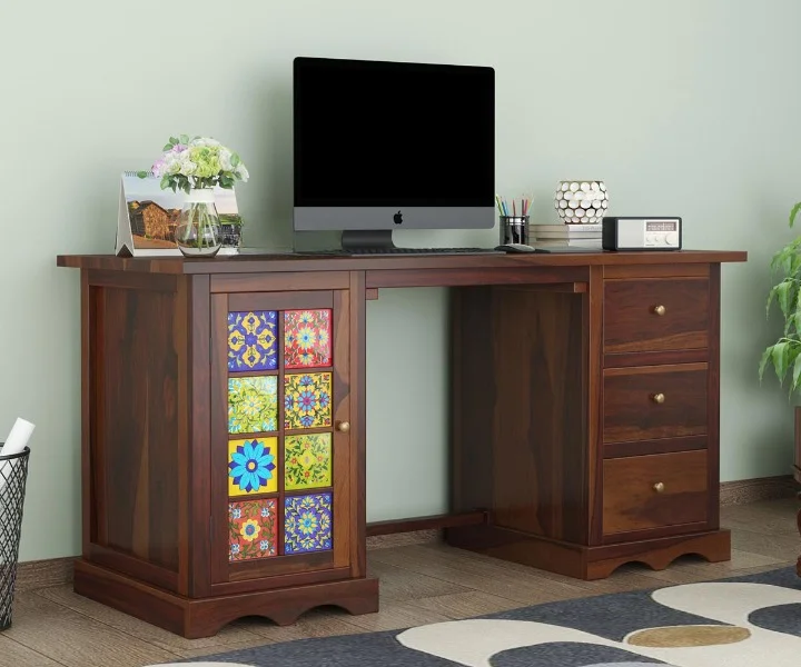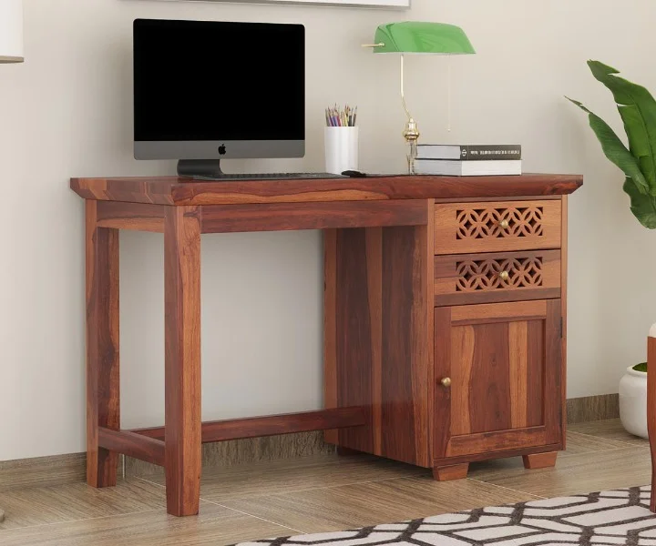 2.Aayushi is crafted from solid wood, which can be identified with the grained pattern over the surface of this wooden study table.