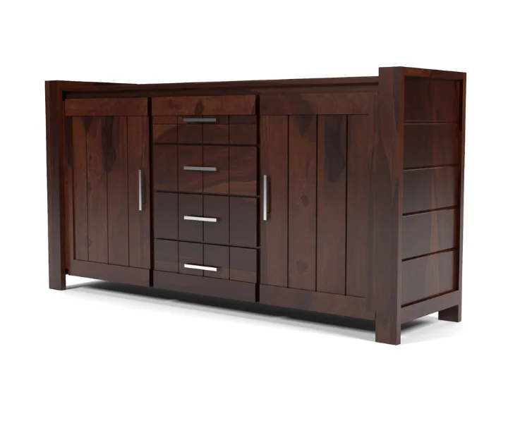 Very very good quality wood used in the product and very nice finish. There are no complaints regarding this chest of drawers. I really liked the style of the furniture.