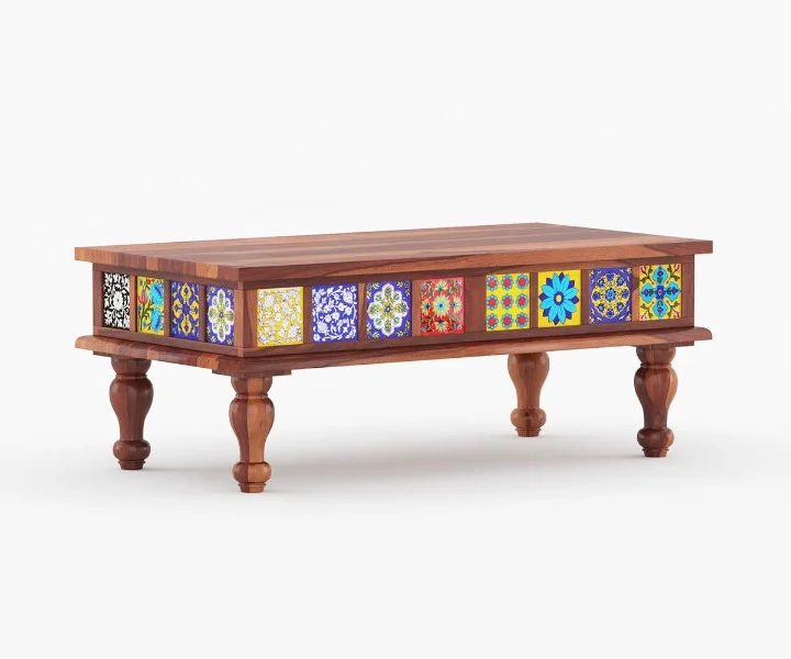 The Alyssa 6-Seater Dining Set is a unique dining set that perfectly embodies the Alyssa theme. The set includes a spacious table, four chairs, and a bench, all crafted from high-quality sheesham wood. What sets this dining set apart is its bohemian-inspired design, with intricate patterns and details that add a creative and playful touch. The table top features a beautiful finish highlighting the natural beauty of the wood, while the legs are painted in a pattern that immediately catches the eye. This is perfect for those who love to mix and match styles and textures, creating a unique and eclectic look that is both playful and sophisticated. The Alyssa theme is all about embracing individuality and self-expression, and this dining set does just that with its colors, intricate patterns, and stunning craftsmanship.