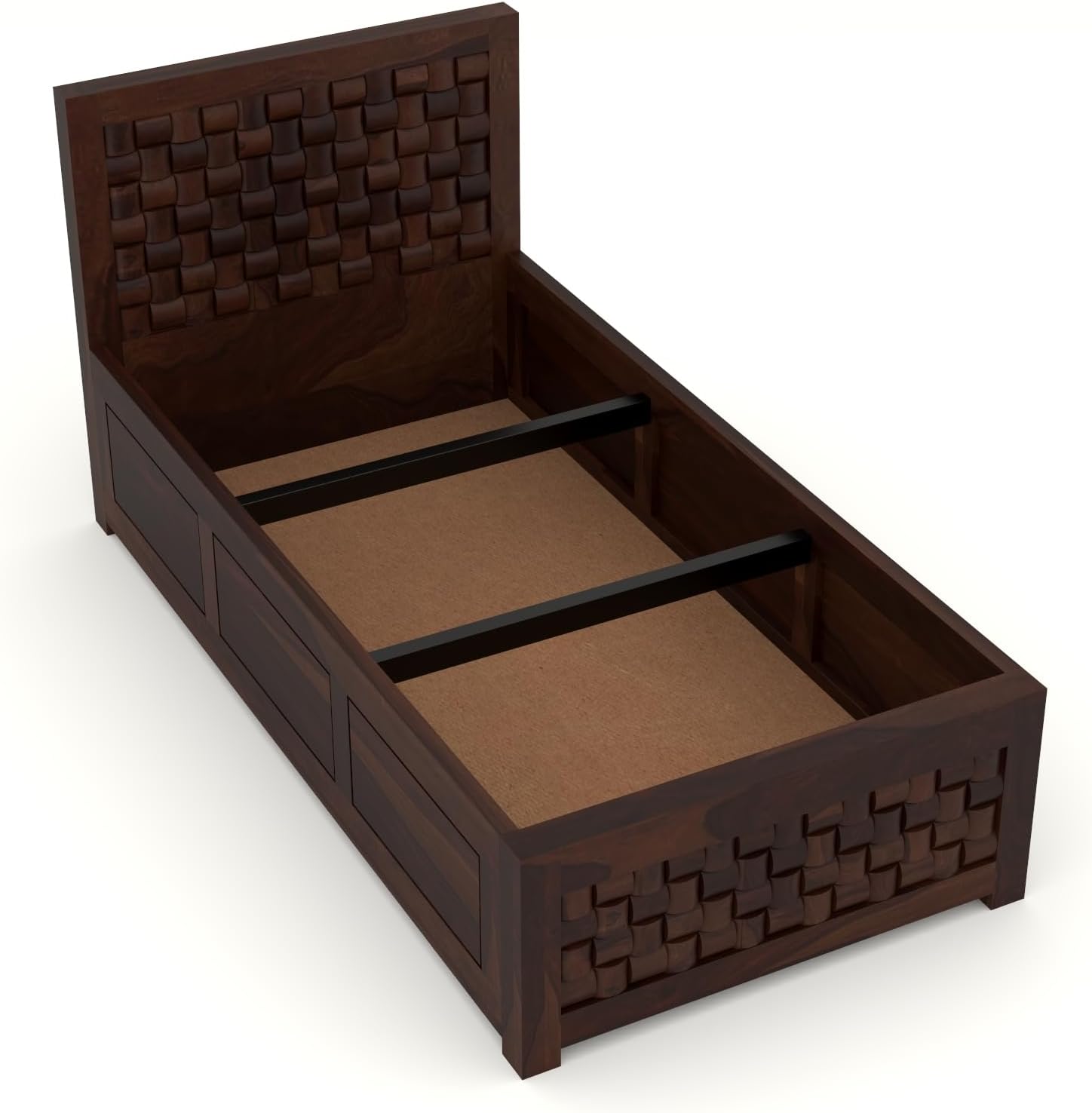 Horten Sheesham Wood Single Bed In Provincial Teak Finish With Box Storage