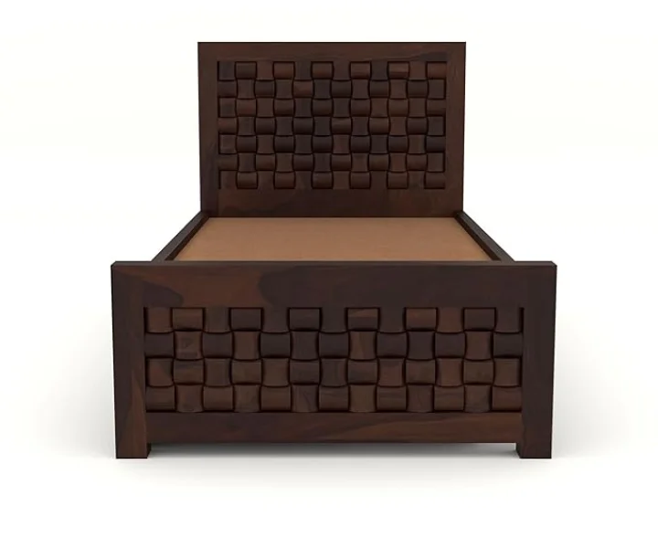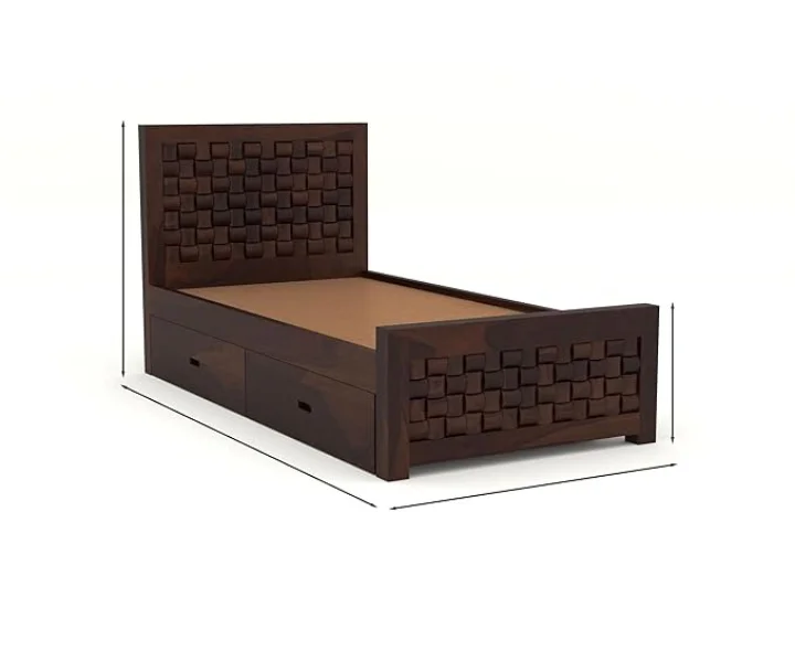 The Balikos Single Bed is crafted from premium Sheesham wood and finished in a rich teak tone, combining durability with everyday functionality. Designed for modern bedrooms, it features integrated drawer storage that helps keep essentials neatly organized while maintaining a clean, timeless wooden aesthetic.