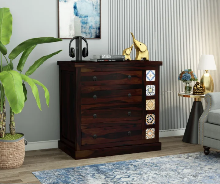 Made with top-notch quality Sheesham wood, this chest of drawers is available with different finish options to choose from to match your interiors.