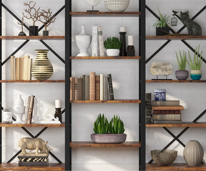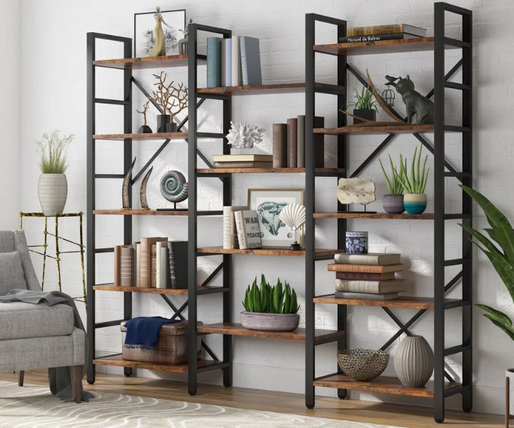 Tier Bookshelf Industrial Large Bookcase Display Rack