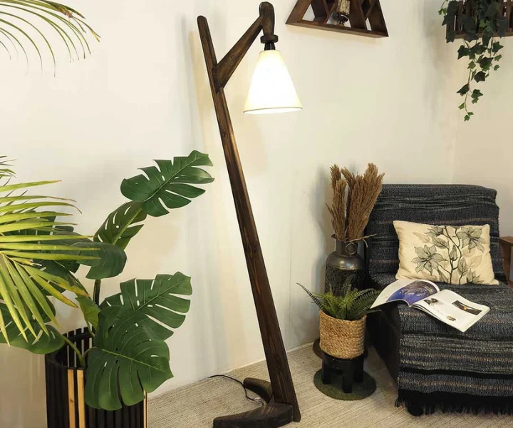 8 reviews for Charlotte Wooden Floor Lamp with Brown Base and Jute Fabric Lampshade