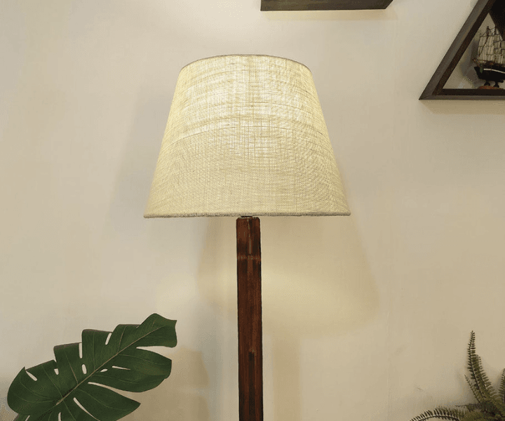 Charlotte Wooden Floor Lamp with Brown Base and Jute Fabric Lampshade