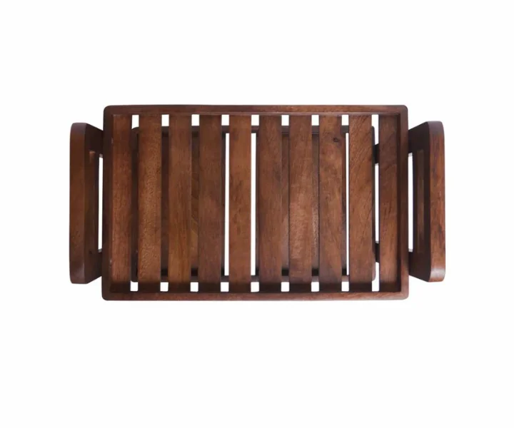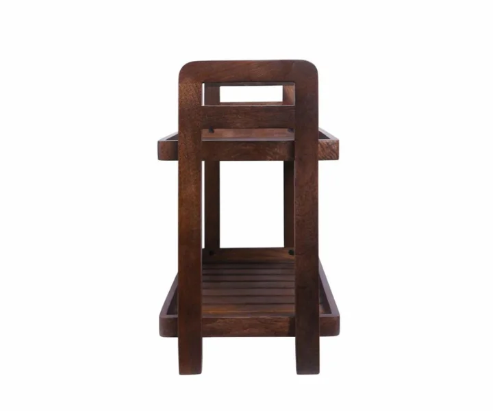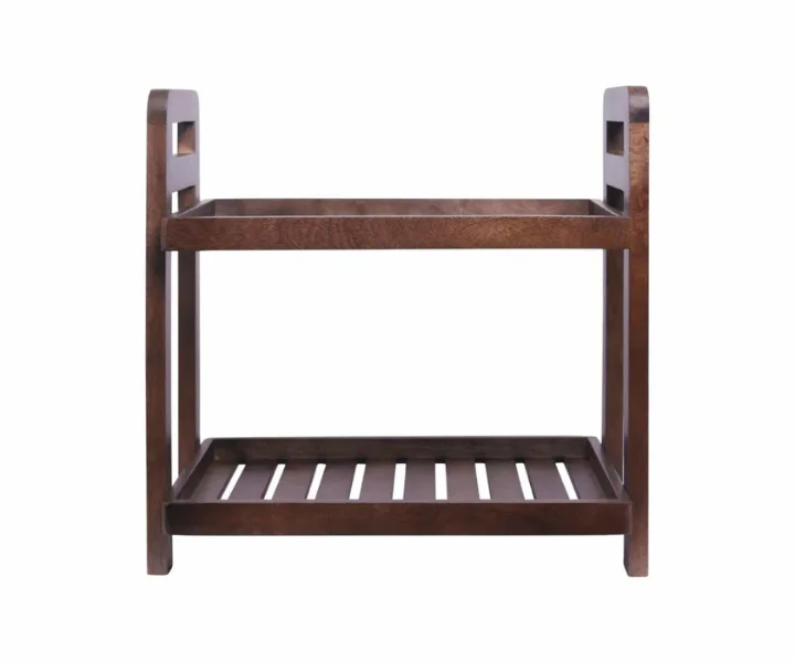 Embodying sophistication, features a two-tier, double tray design in a deep cocoa hue. The rich cocoa tone showcases the wood’s natural grain, creating an inviting ambiance that enhances your space.