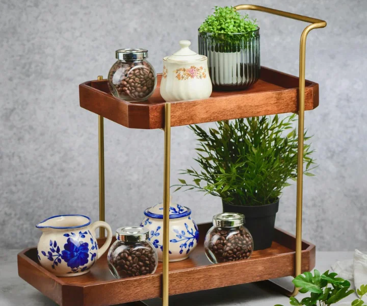 It offers double the space. Whether placed in your living room, bedroom, office, or kitchen, it is a versatile addition. It serves as a stylish platform for vegetables, fruits, books, decor, office supplies, or your favourite potted plants, helping you stay organized in style.