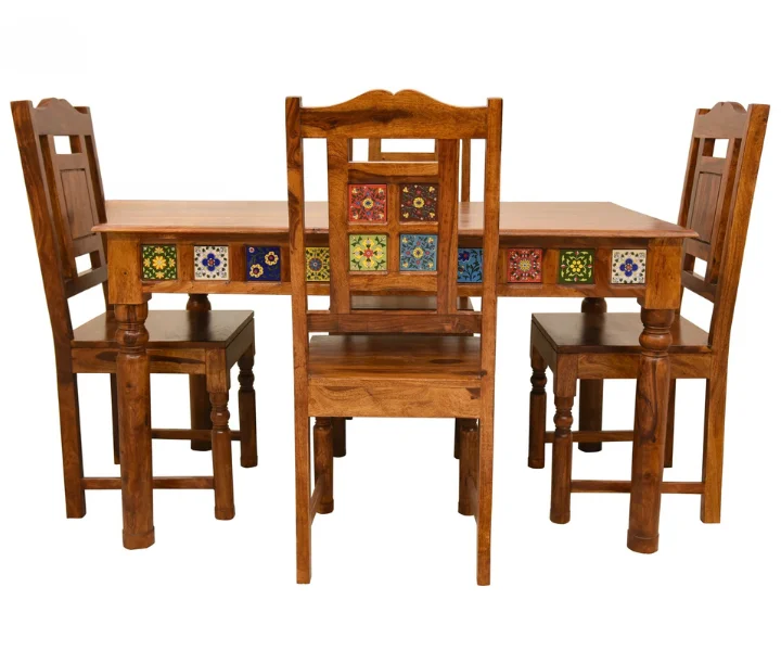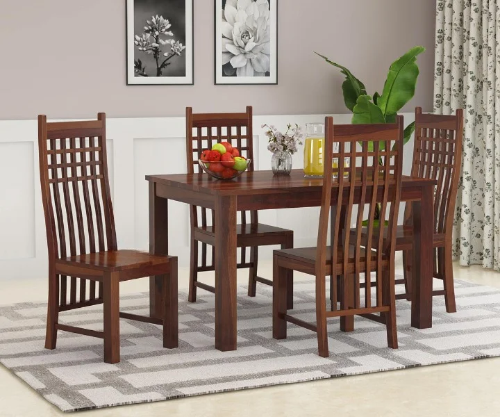 A contemporary design made of Solid Sheesham Wood, this Dining set will be a perfect fit in your elegant home. 4 compact-sized chairs with wood seats complete the dining. The table offers plenty of sitting space for four people and has retained its natural wood grain and is sure to stand the test of time over the years. The extra width that we have provided to this model gives it a great edge over other competing brands that provide just about 3 by 3 tops. Do not be misled by the pricing of such mini tabletops. Enjoy the same with family or during get-togethers.