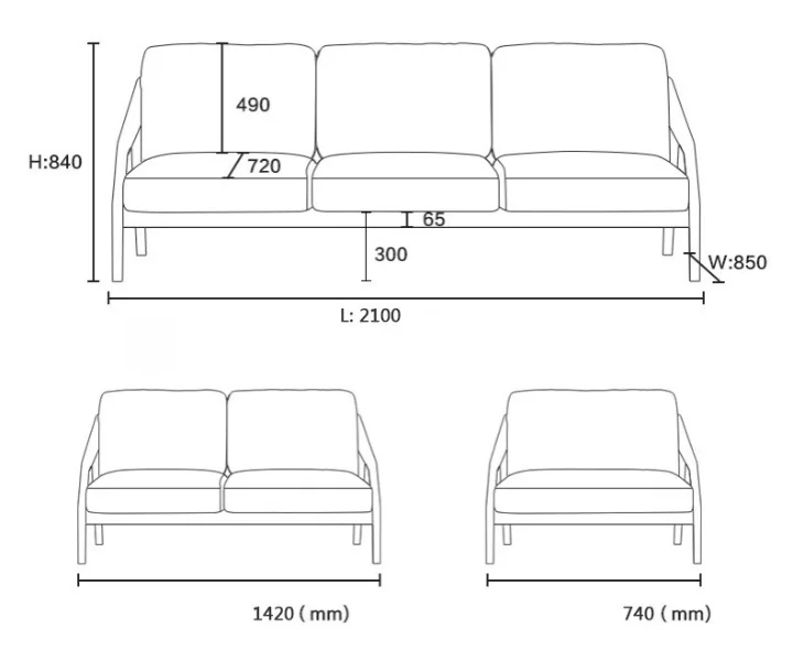 | SIZE | Three seater : 72 L x 30 W x 30.5 H  cmTwo Seater :  60 L x 36 W x 30 H   cm Single seater : 30 L x 30 W x 30.5 H cm |