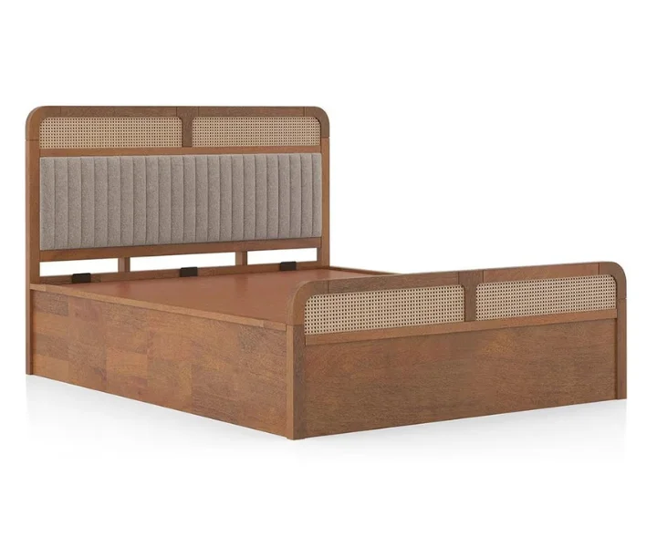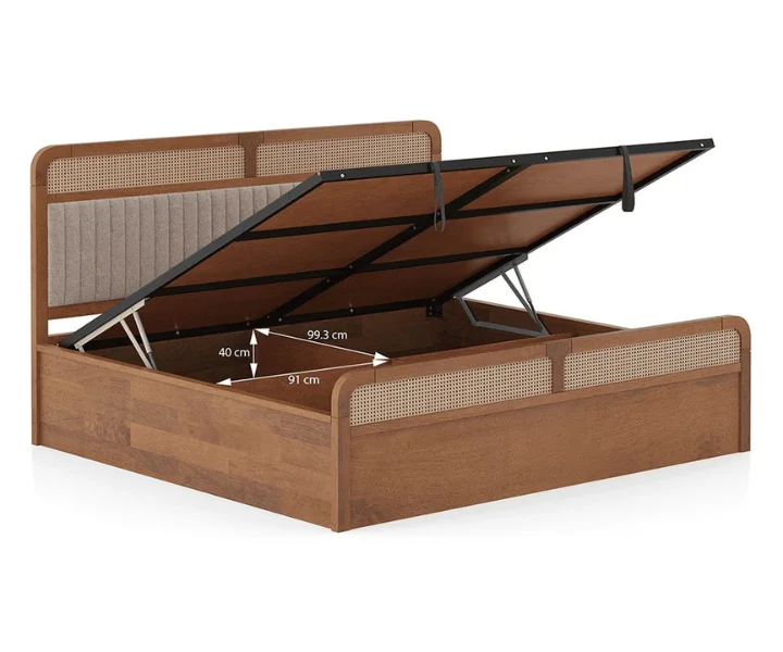 Hanoi Solid Wood Cane King Size Hydraulic Teak Wood Storage Bed