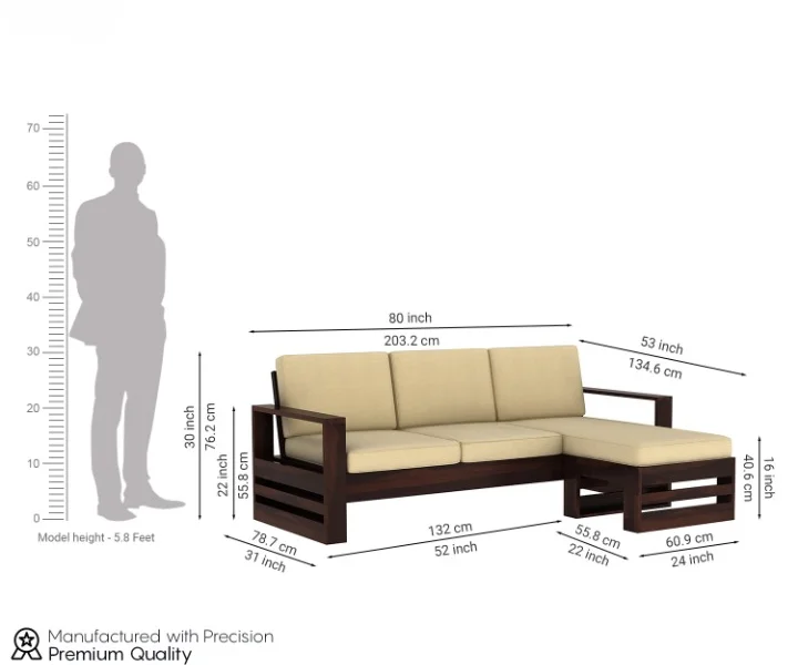 | SIZE | L – Shape : 203.2 L x 134.6 W x 76.2 H cm |
