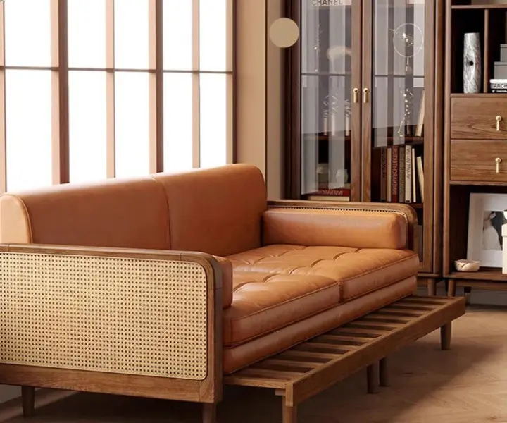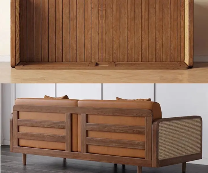 Japandi Solid Wood Minimalism Rattan Back Support Sofa Bed