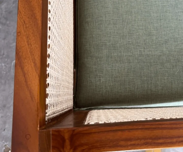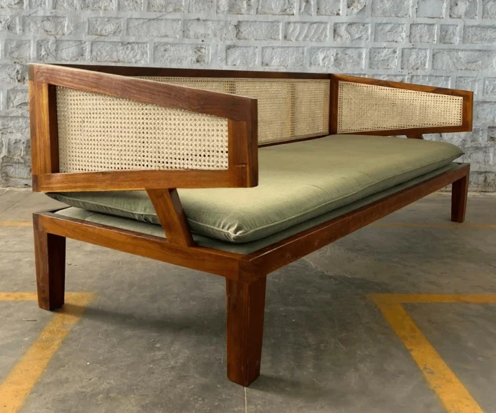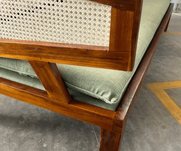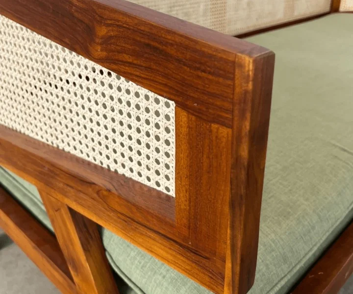 MARVIN SOLID TEAK WOOD & RATTAN 3 SEATER SOFA