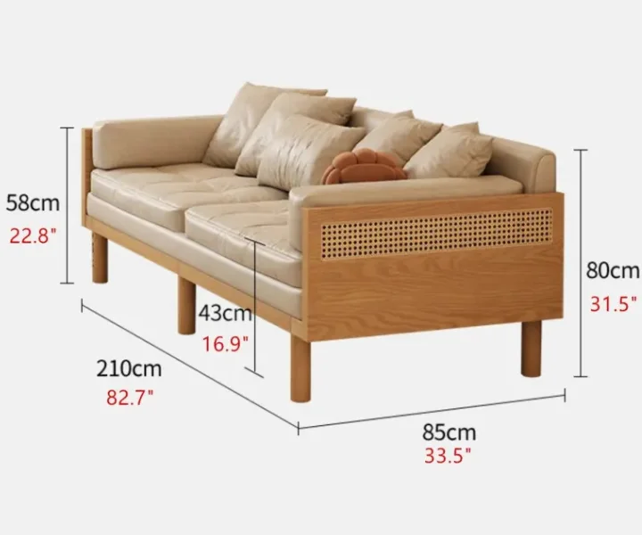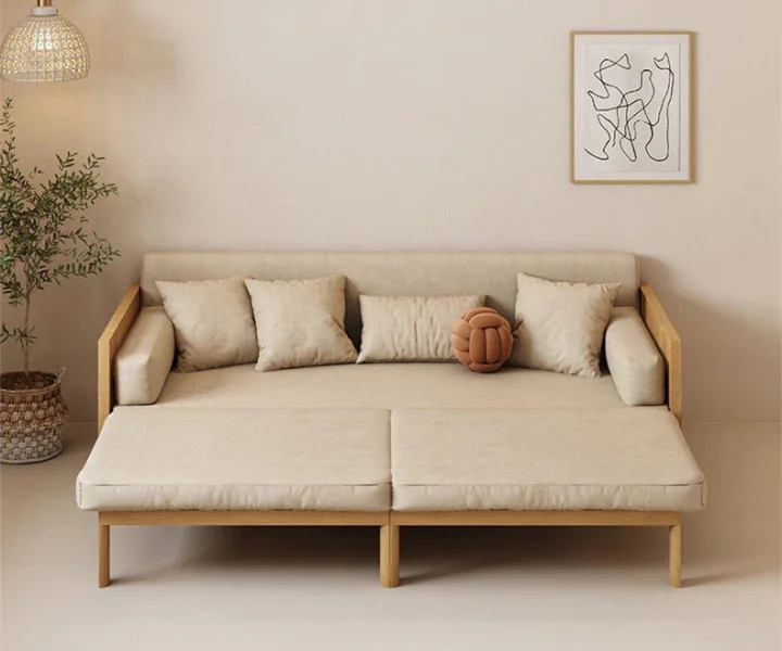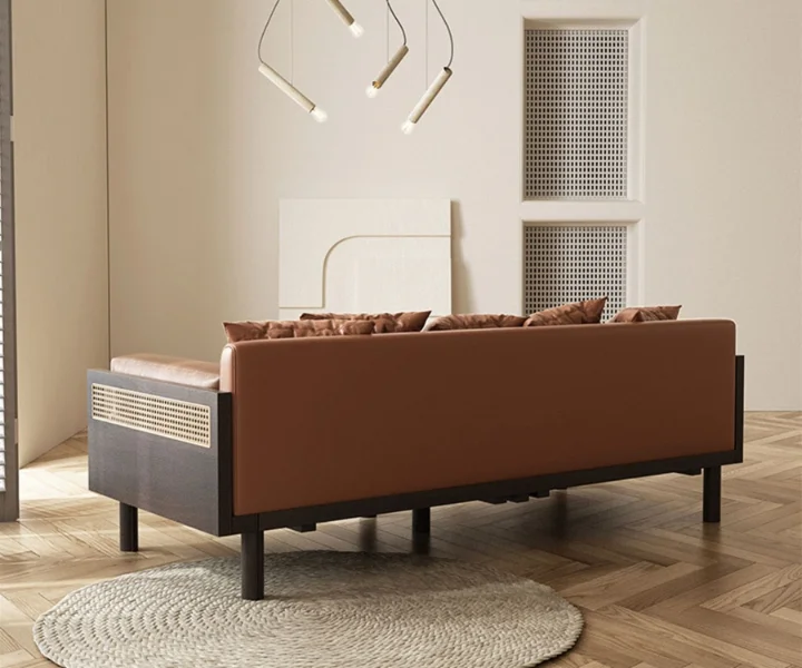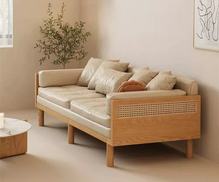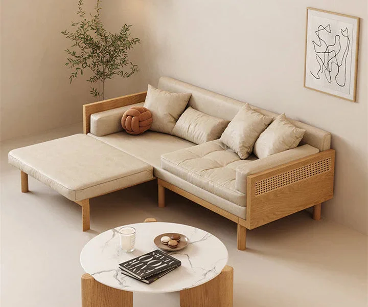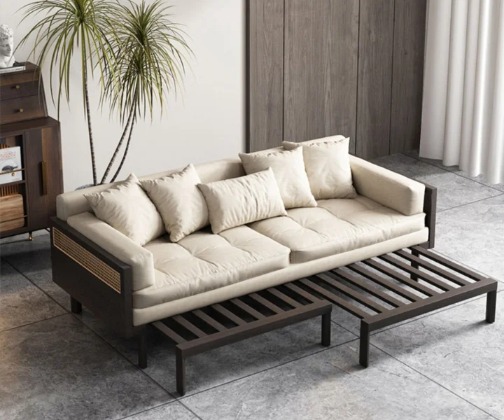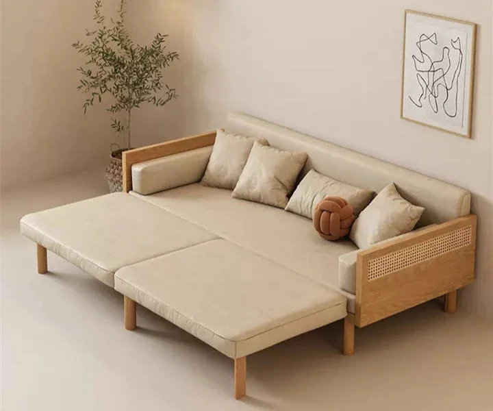 Sofa Bed With Rattan Weaving Wooden Frame