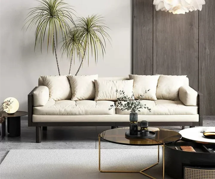 L Shape Wood Linear Sectional Sofa Set