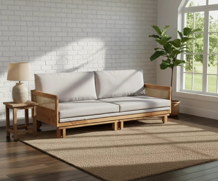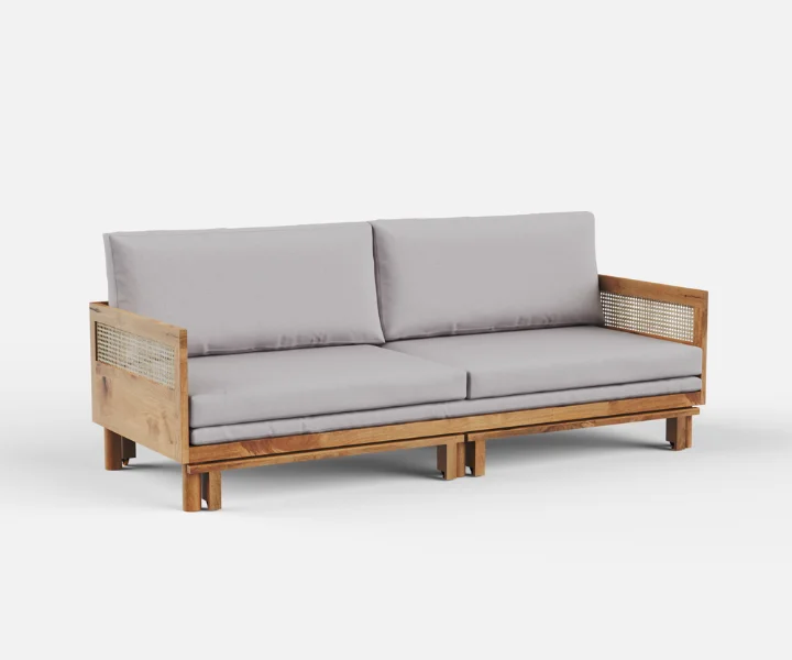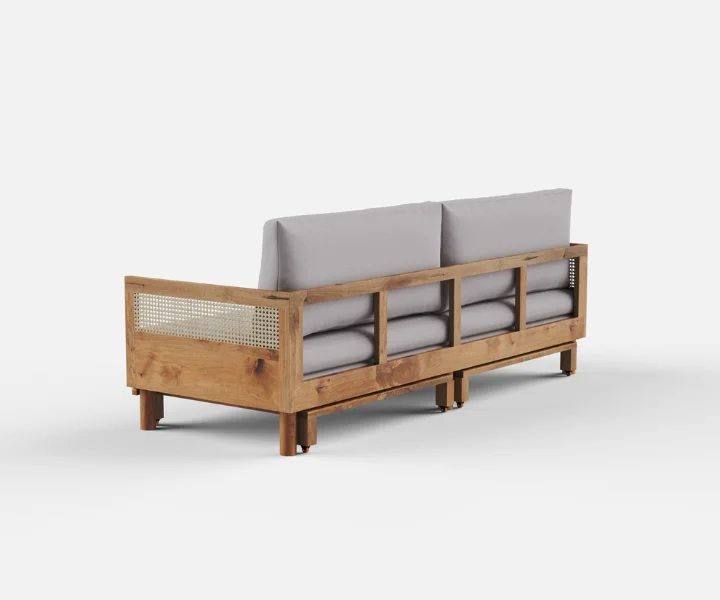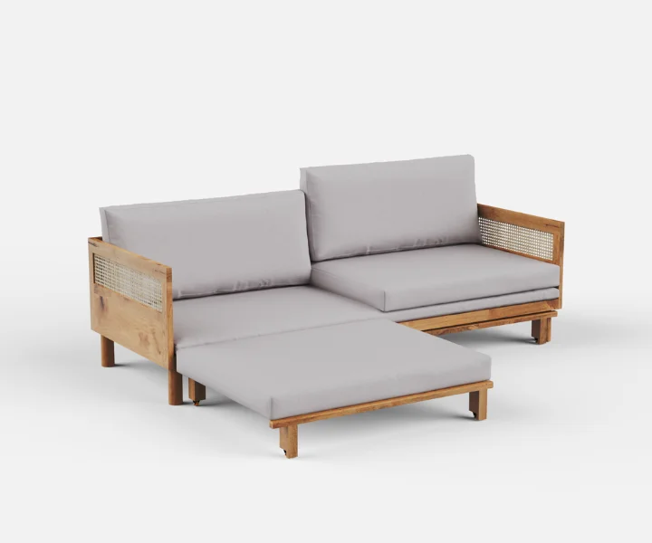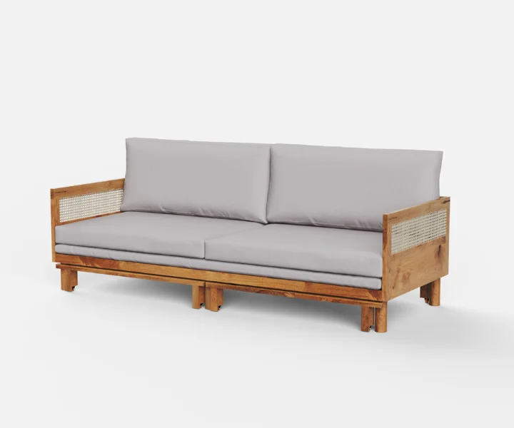 Noah 3 Seater Solid Wood Rattan Sofa Cum Bed and L Shape