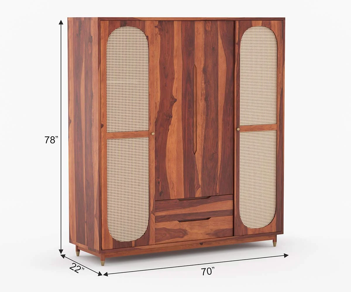 Melody 3 Door Solid Sheesham Wood Wardrobe