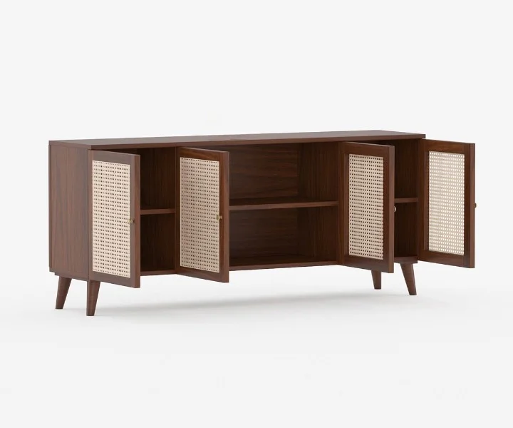 Norris Solid Wood Acacia Cane Cabinet and Sideboard