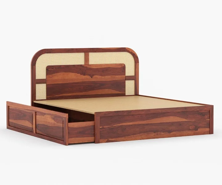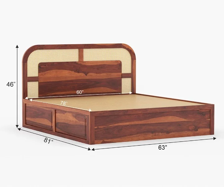 This King-Queen Size Rattan Sheesham Wood Cane Bed with Storage offers both style and functionality, making it a perfect addition to any bedroom.