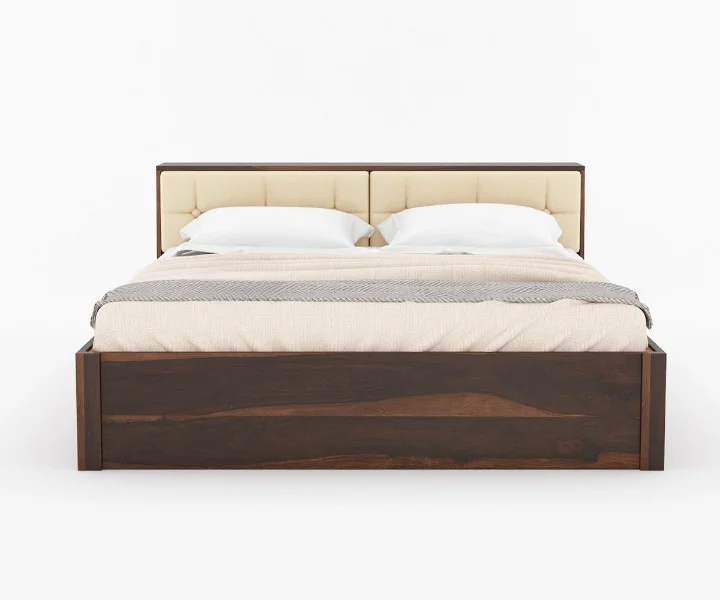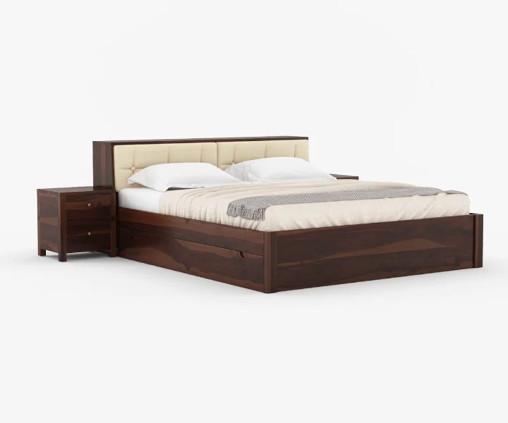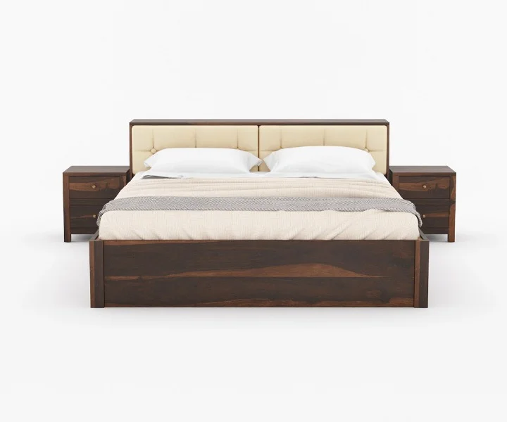 Louis Sheesham Wood King-Queen Size Bed With Storage