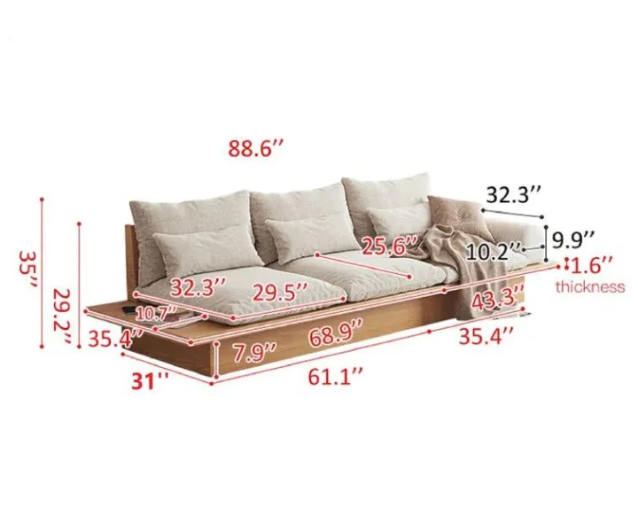 This 3 Seater solid wood sofa with storage underneath is a stylish and functional piece of furniture that combines the minimalist aesthetics of Japanese design with the warmth and durability of solid wood construction.