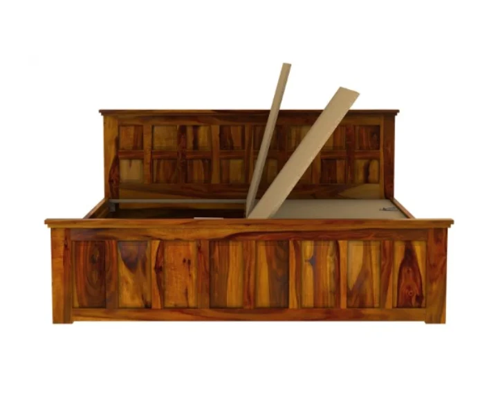 Bed Size: Queen Size, Wood Polish: Honey Finish, Storage: Hydraulic Storage x 1