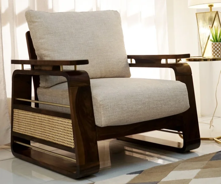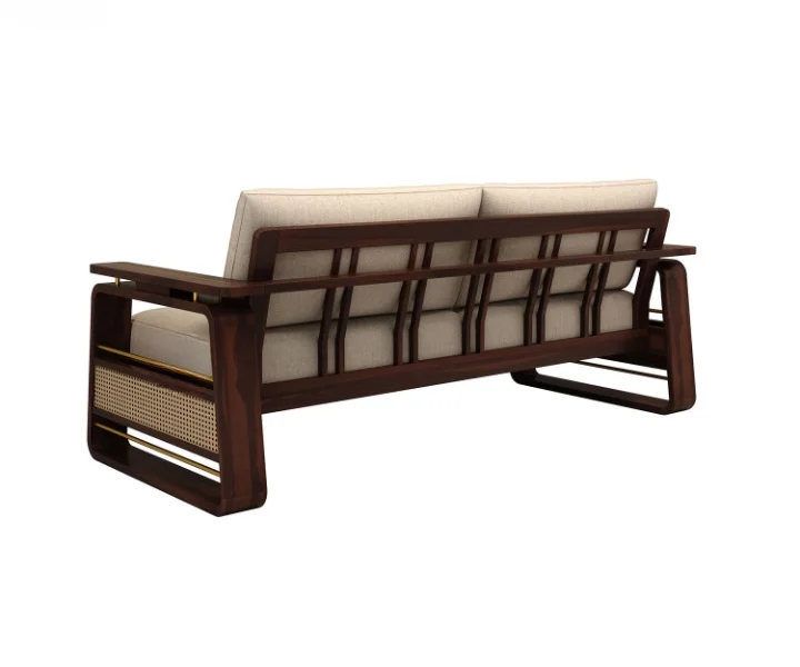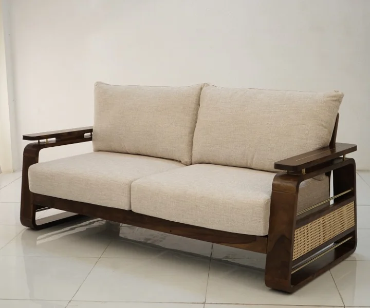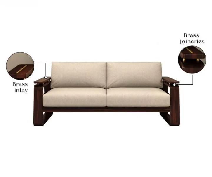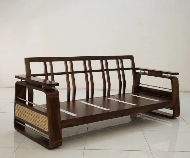 Made of high-quality Sheesham wood, this wooden sofa set with cane and brass work is sturdy in nature and offers lasting durability. The Vedic 3+1+1 Wooden Sofa Set With Cane and Brass Work is available in varied finish options for you to choose from.