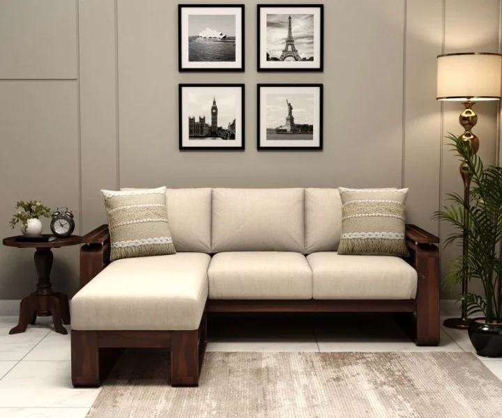Made of high-quality sheesham wood, this wooden sofa with cane and brass work is sturdy in nature and offers lasting durability. The Vedic L shape wooden sofa with cane and brass work is available in varied finish options for you to choose from.
