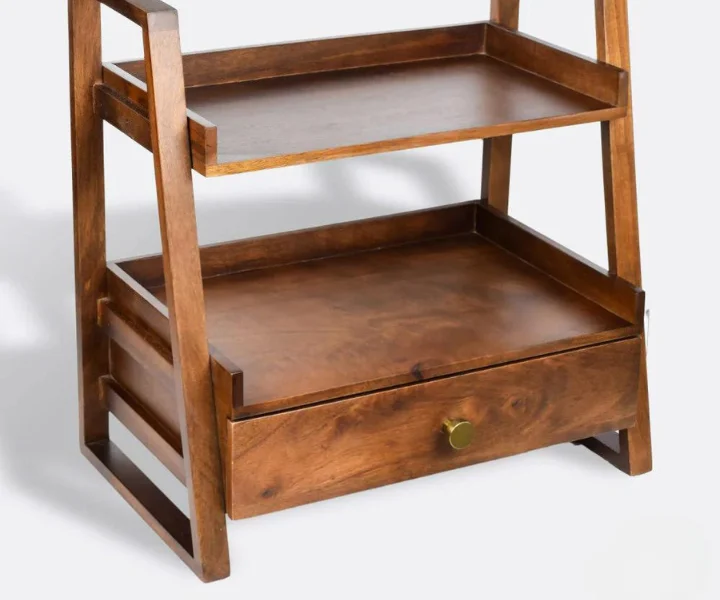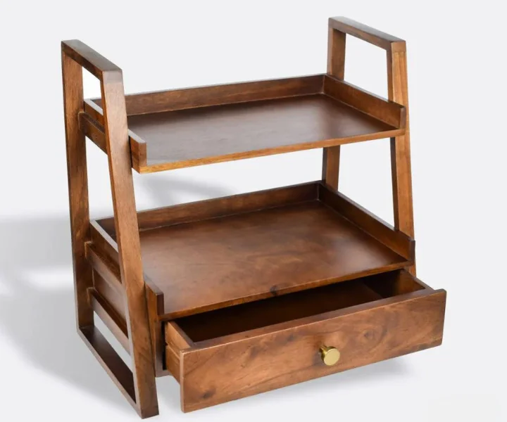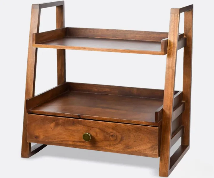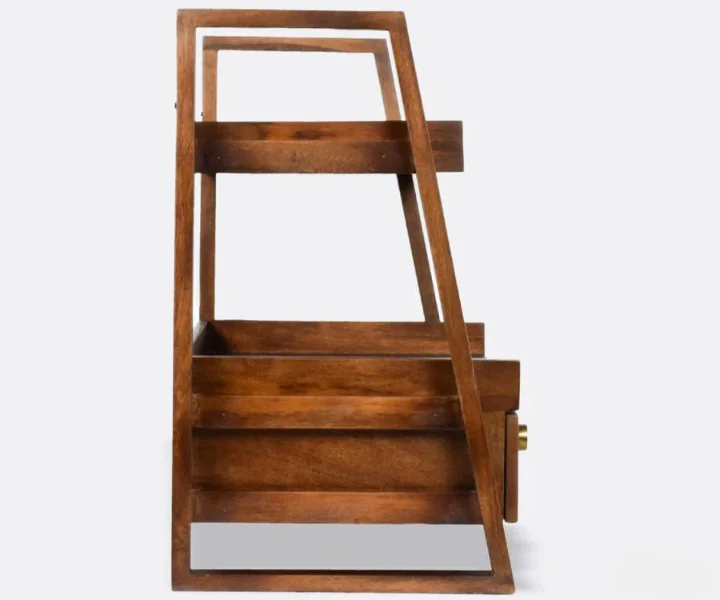 Bring Versatile Charm and Organization to Your Home with this Sheesham kitchen Storage Rack This handcrafted storage rack, made from sustainable Sheesham wood with a stunning glossy walnut finish, is more than just a place to stash your belongings. It’s a statement piece that blends elegant design with ample functionality, bringing both beauty and organization to your kitchen, living room, kid’s room, or any other space. Features: Timeless Vintage Design: Featuring a unique vintage aesthetic, this rack adds a touch of character and warmth to any room.