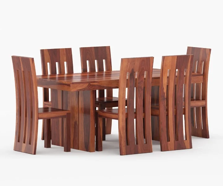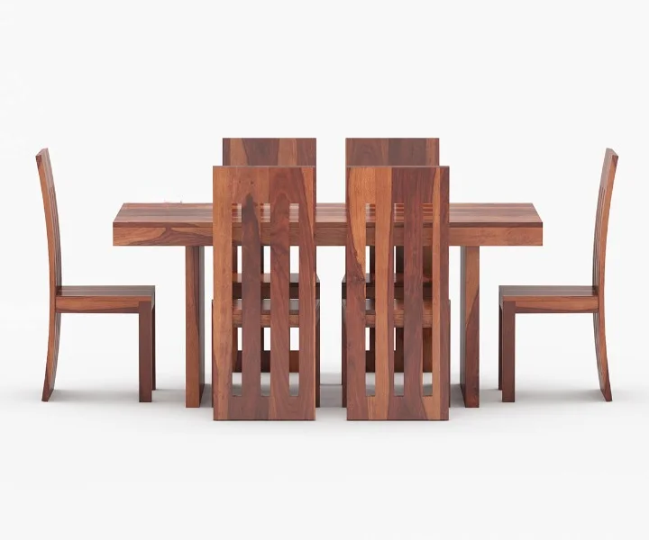 Made of high-quality Sheesham wood, this is sturdy in nature and offers lasting durability. You can choose from a range of variant finishes when purchasing the Wertex 6 Seater Dining Table Set.