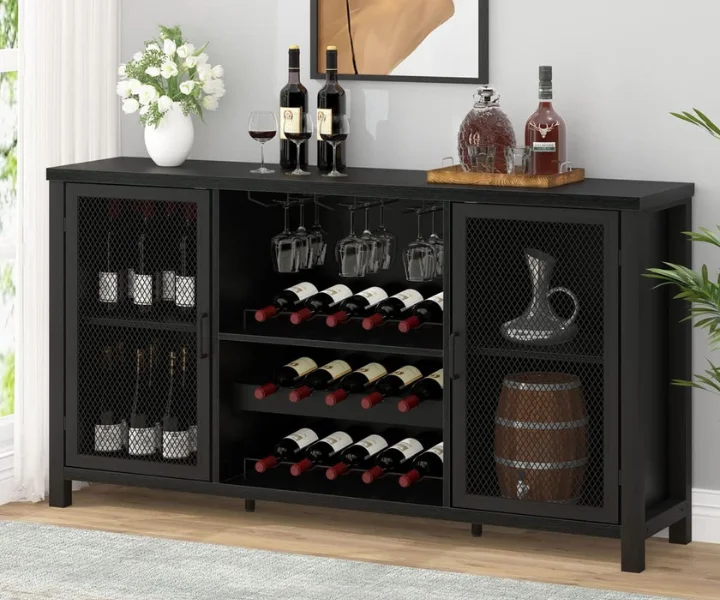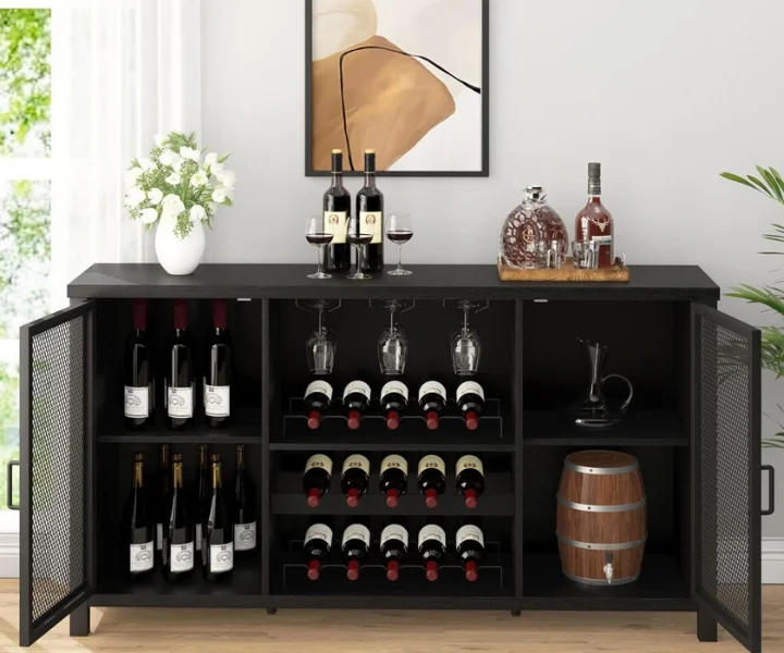 Versatile and Multi-functional Organizer: This coffee bar cabinet is incredibly versatile and perfect for various spaces such as the kitchen, living room, and dining room. It serves as a stylish storage solution for your liquor collection, glassware, and bar accessories while also functioning as a display cabinet for showcasing your favorite decor pieces.