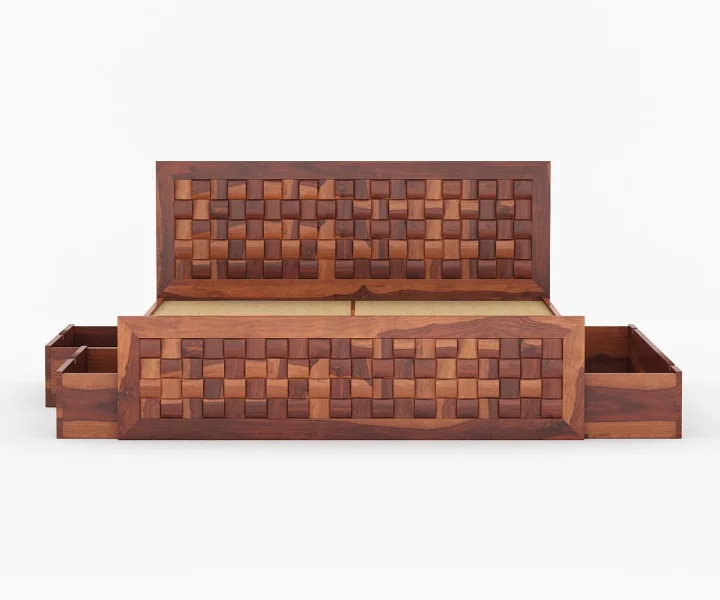 Zik Zak Sheesham Wood King-Queen Size Bed With Storage